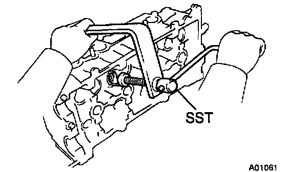 a. Using SST, compress the valve spring and remove the 2 keepers.