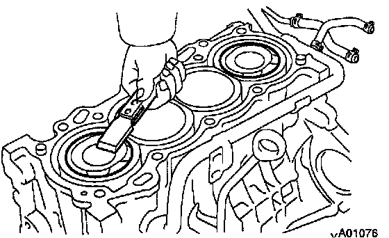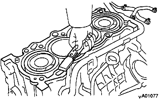 Using a gasket scraper, remove all the gasket material from the cylinder block contact surface.