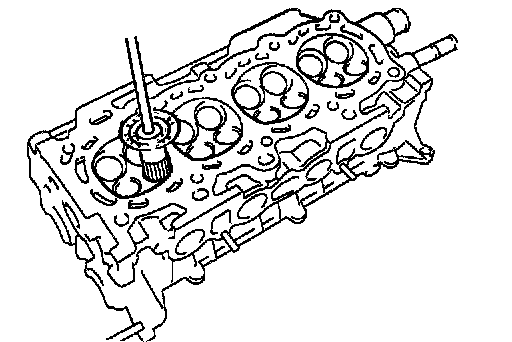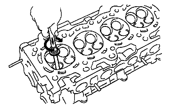 g. Using a sharp 5 mm reamer, ream the guide bushing to obtain the standard specified clearance between the guide bushing and valve stem.