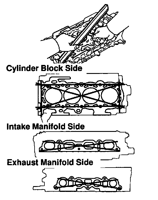Using a precision straight edge and feeler gauge, measure the surface contacting the cylinder block and the manifolds for warpage.