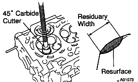 a. Using a 45° carbide cutter, resurface the valve seats. Remove only enough metal to clean the seats.