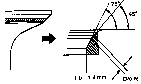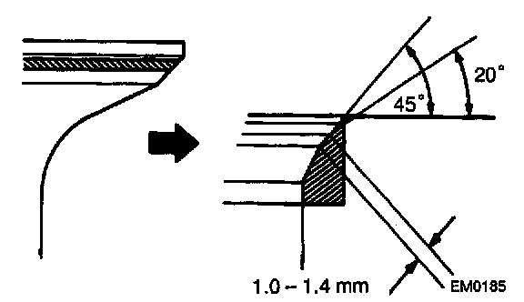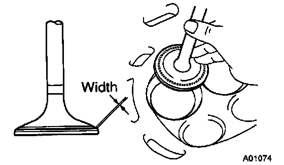 - Check that the seat contact is in the middle of the valve face with the following width: 1.0 - 1.4 mm (0.039 - 0.055 inch)