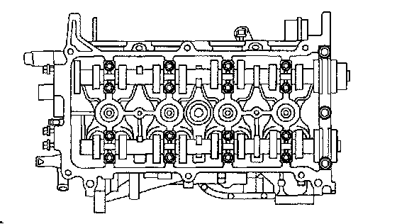 Using a dye penetrant, check the combustion chamber, intake ports, exhaust ports and cylinder block surface for cracks. If cracked, replace the cylinder head.