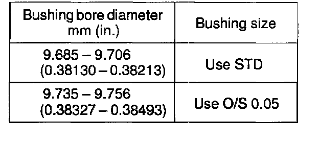 Bushing inside diameter: 5.010 - 5.030 mm (0.19724 - 0.19803 inch)