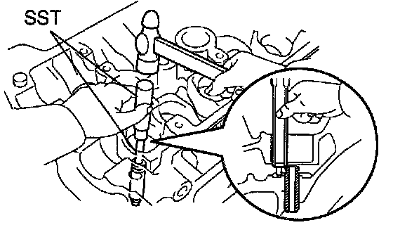 b. Using SST and a hammer, tap out the guide bushing.