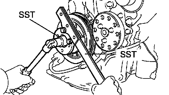 a. Turn the crankshaft pulley, and align its groove with timing mark "0" of the timing chain cover.