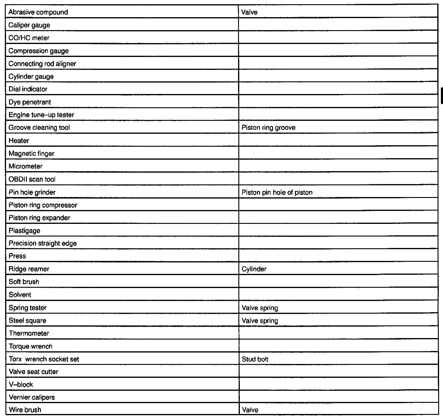Engine: Tools and Equipment