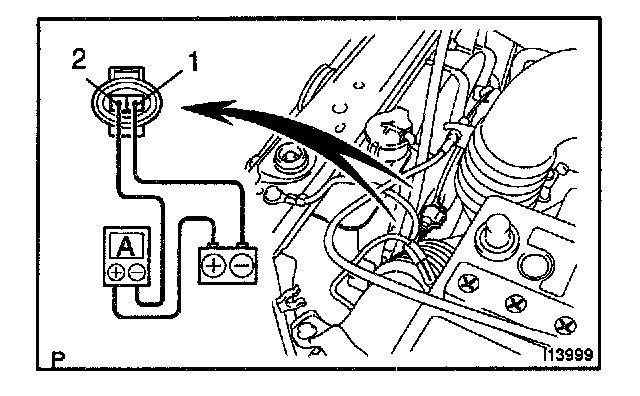 b. Connect battery and ammeter to fan connector, as shown in the illustration.