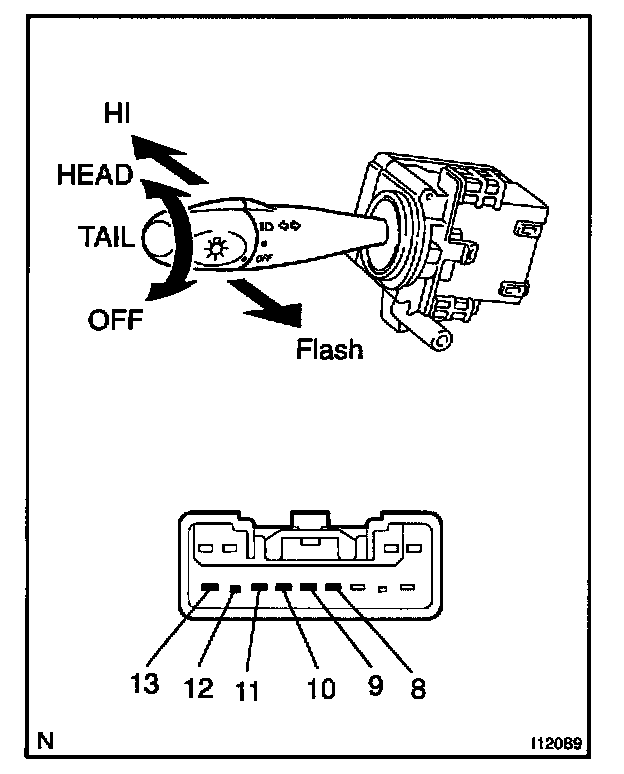 2. INSPECT HEADLIGHT DIMMER SWITCH CONTINUITY