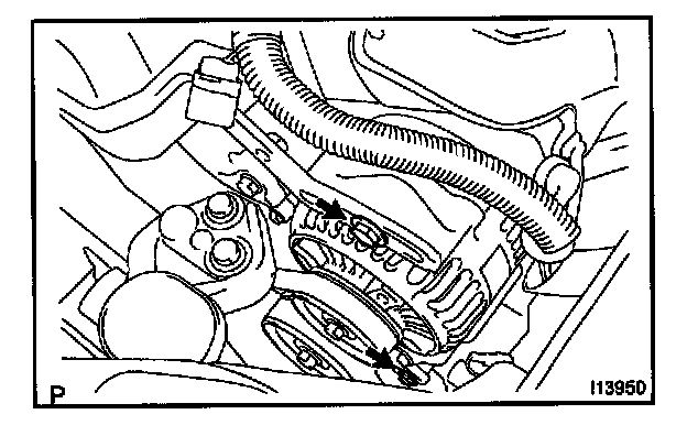 b. Loosen the drive belt tension by turning adjusting bolt and remove the drive belt.
