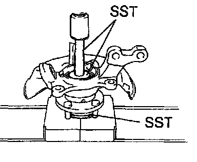 Using SST and a press, install a new bearing to the steering knuckle.