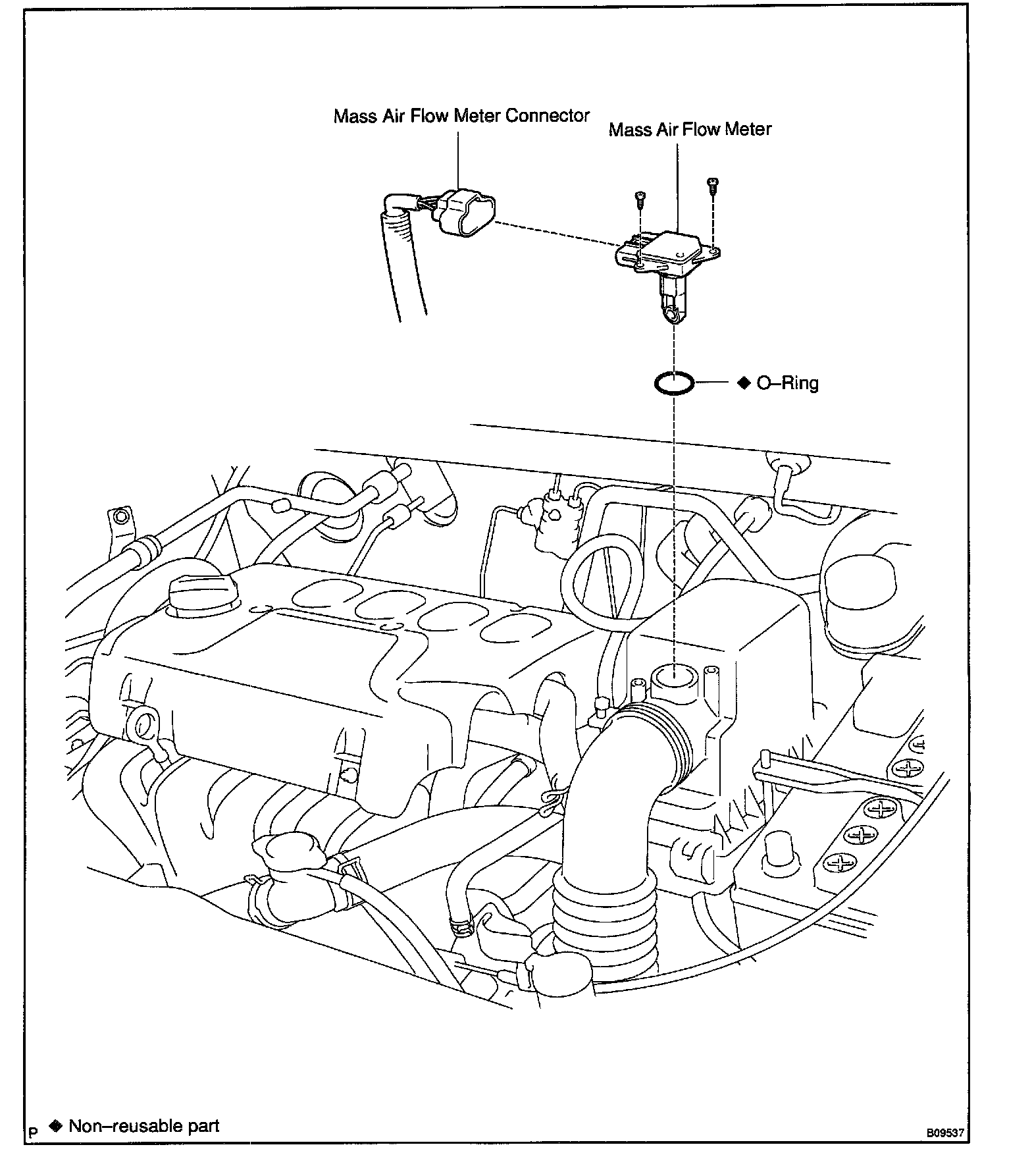 Remove the 2 screws, air flow meter and O-ring.