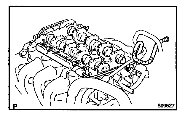 h. Place the delivery pipe and fuel pipe together with the 4 injectors in position on the cylinder head.