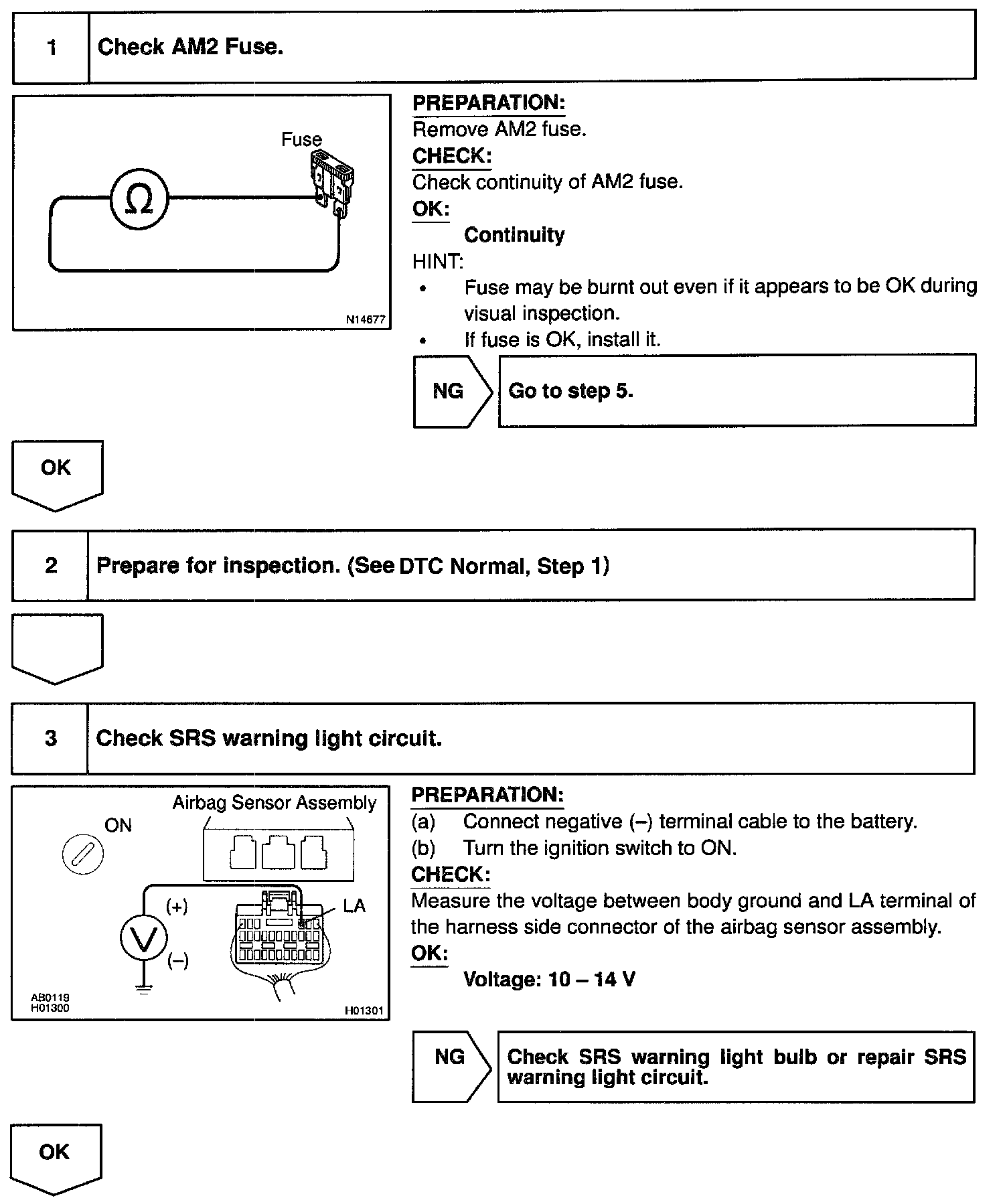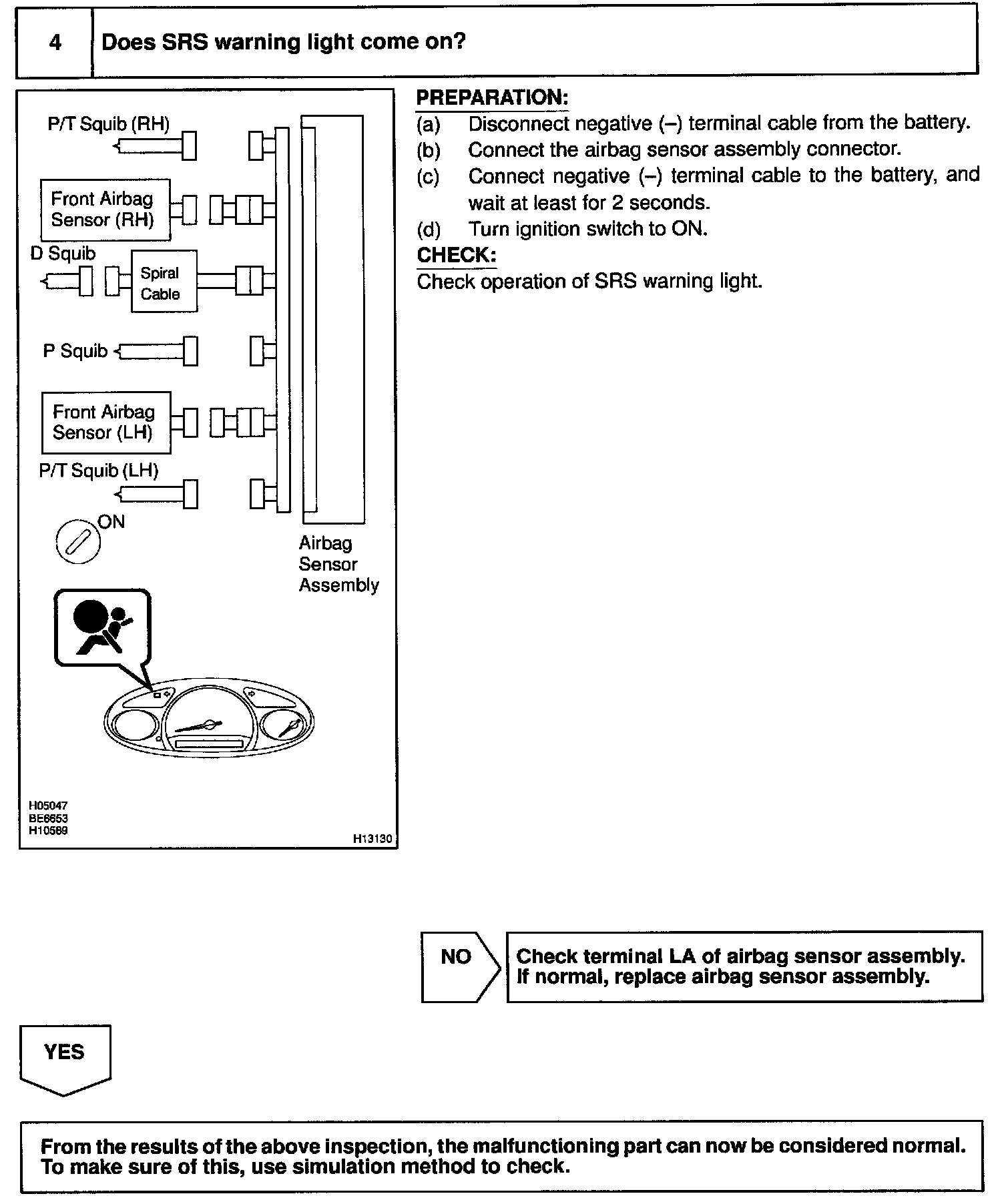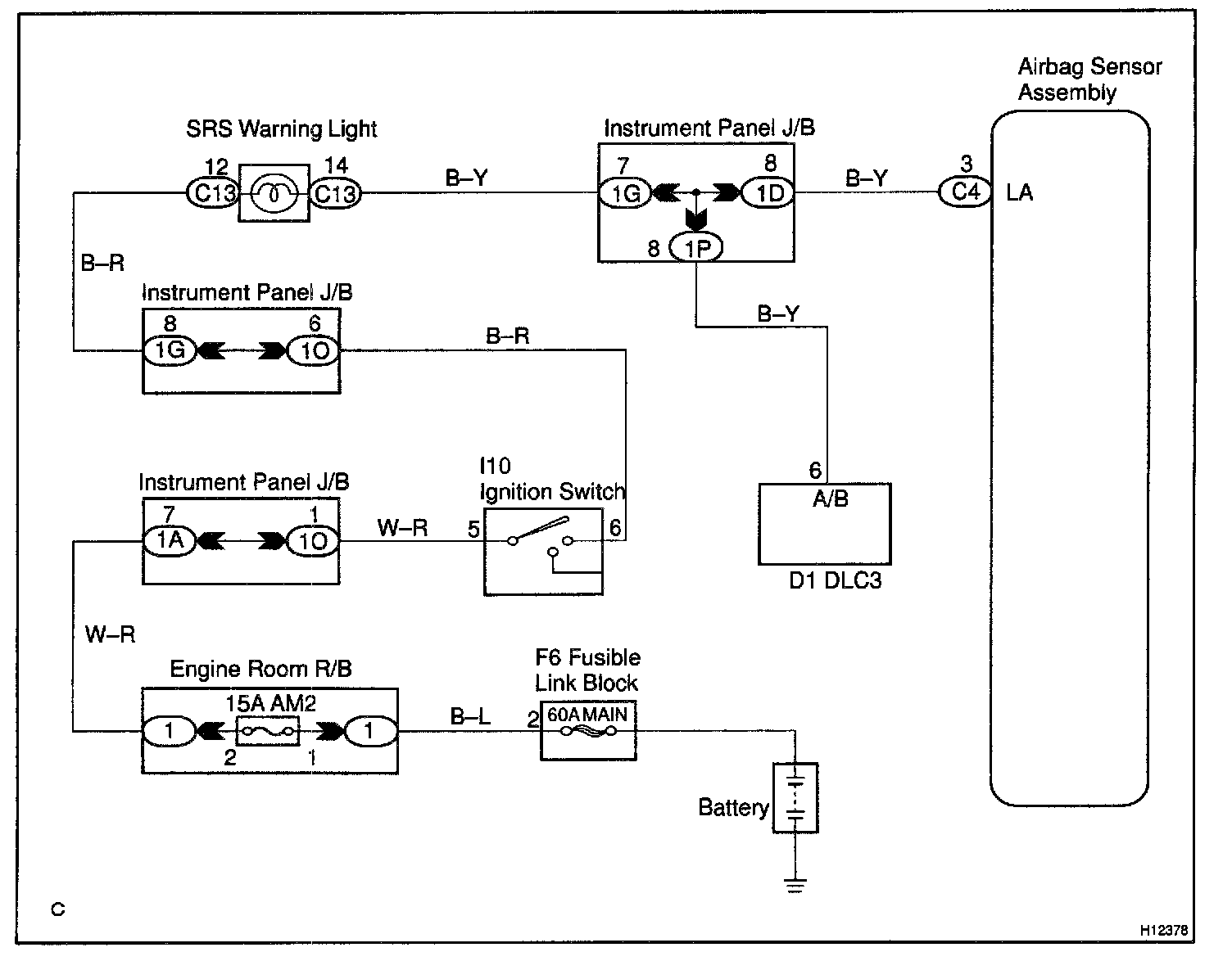 SRS Warning Light Circuit Malfunction (Does not light UP, when ignition switch is turned to ON)CIRCUIT DESCRIPTION