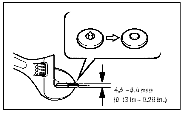 C. When the adjustment screw for the adjustable wrench cannot be turned by hand, tighten the adjustment screw using a pair of adjustable joint pliers until the space between jaws of the adjustable wrench is 4.5 - 5.0 mm. (0.18 in. - 0.20 in. [See illustrations.])