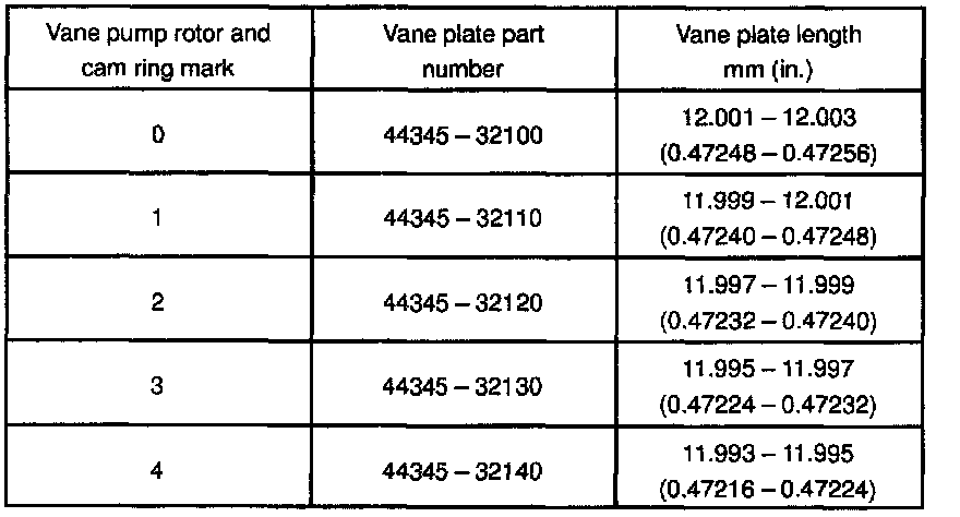 If it is more than the maximum, replace the vane plate and/or vane pump rotor with the one having the same mark stamped on the cam ring.