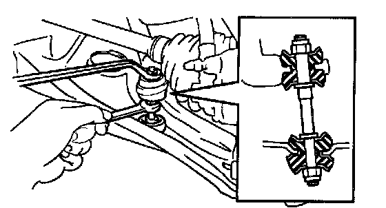 Install the stabilizer bar link, 4 cushions and 5 retainers with the 2 nuts.