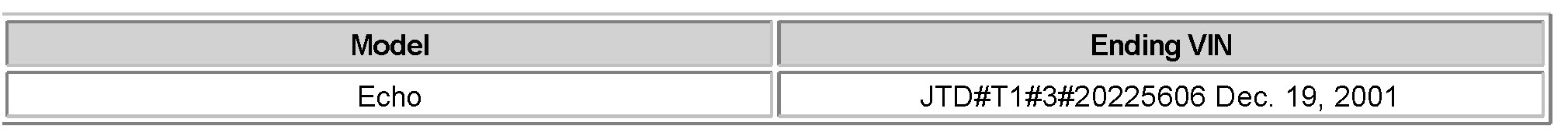 As the result of constant product improvement, the front floor carpet on 2000-2002 model year Echo vehicles has been modified. This Service Bulletin is to provide the production change and parts information.