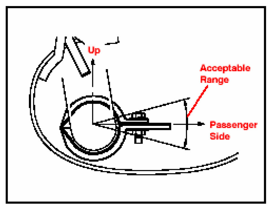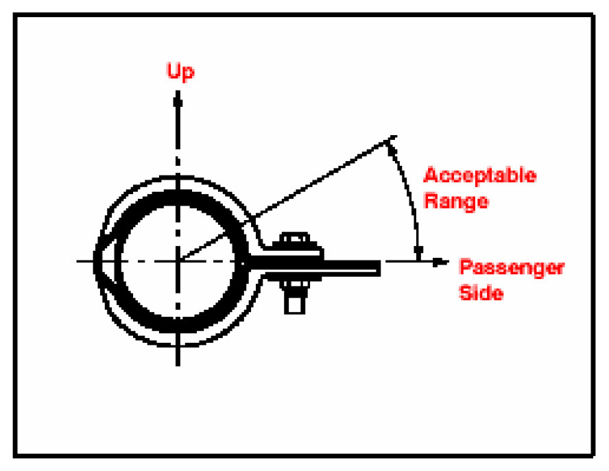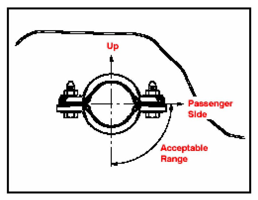2. Install the new clamp positioning the bolt within the "acceptable range" shown in the corresponding illustrations.