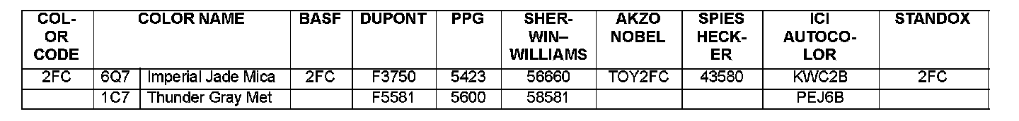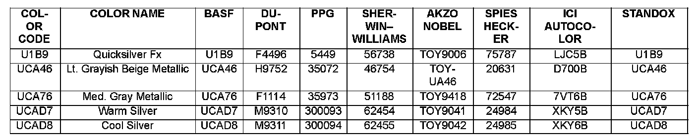 2001 TOYOTA PAINT CODES AND COLOR NAMES