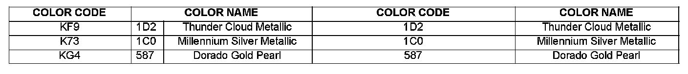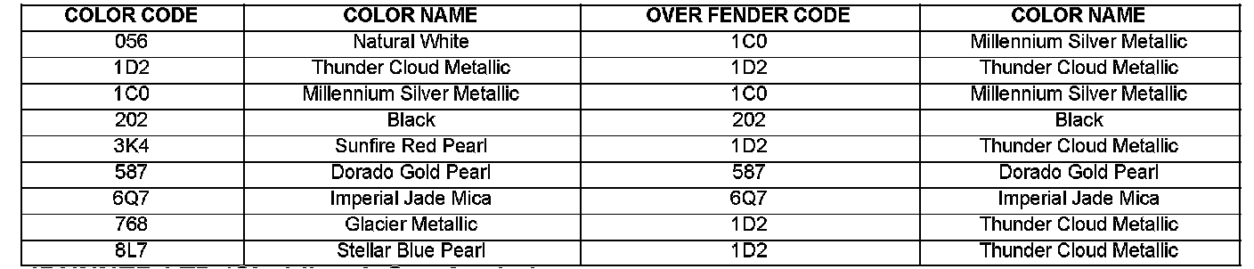 BASF, DuPont, PPG, Sherwin-Williams, Akzo Nobel, Spies-Hecker, ICI Autocolor and Standox. NOTE: The vehicle paint code is on the certification label which can be located on the driver side door jamb or the lower section of the "B" pillar.
