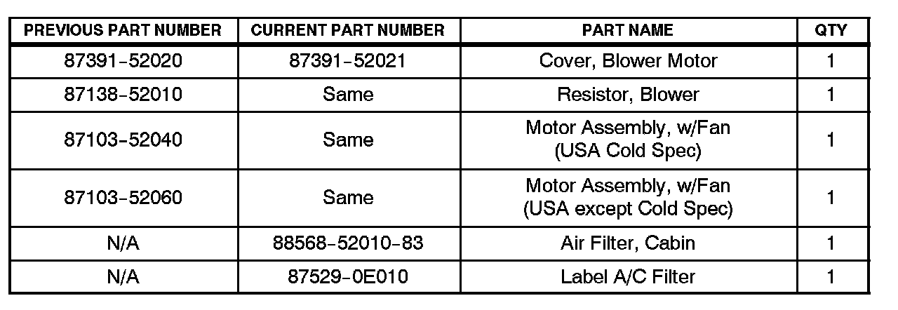 Some 2000 to 2003 model year ECHO vehicle customers may experience a blower fan that only works on high speed. A production change was implemented to the air duct to prevent this condition. This TSB provides a field-fix repair to improve this condition. Follow the repair procedures described below.