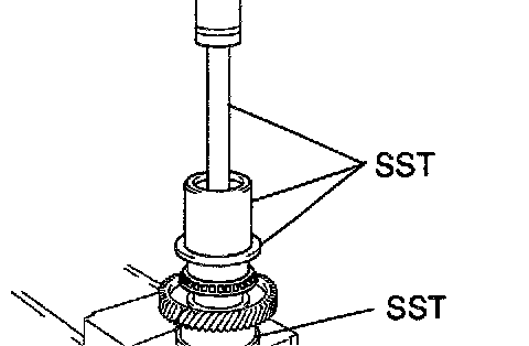 b. Using SST and a press, install the rear tapered roller bearing to the counter drive gear and transaxle case.