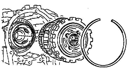 NOTICE: Stop the press when the O/D brake piston is lowered 1 - 2 mm (0.039 - 0.078 inch) from the snap ring groove, preventing the O/D brake piston from being deformed.
