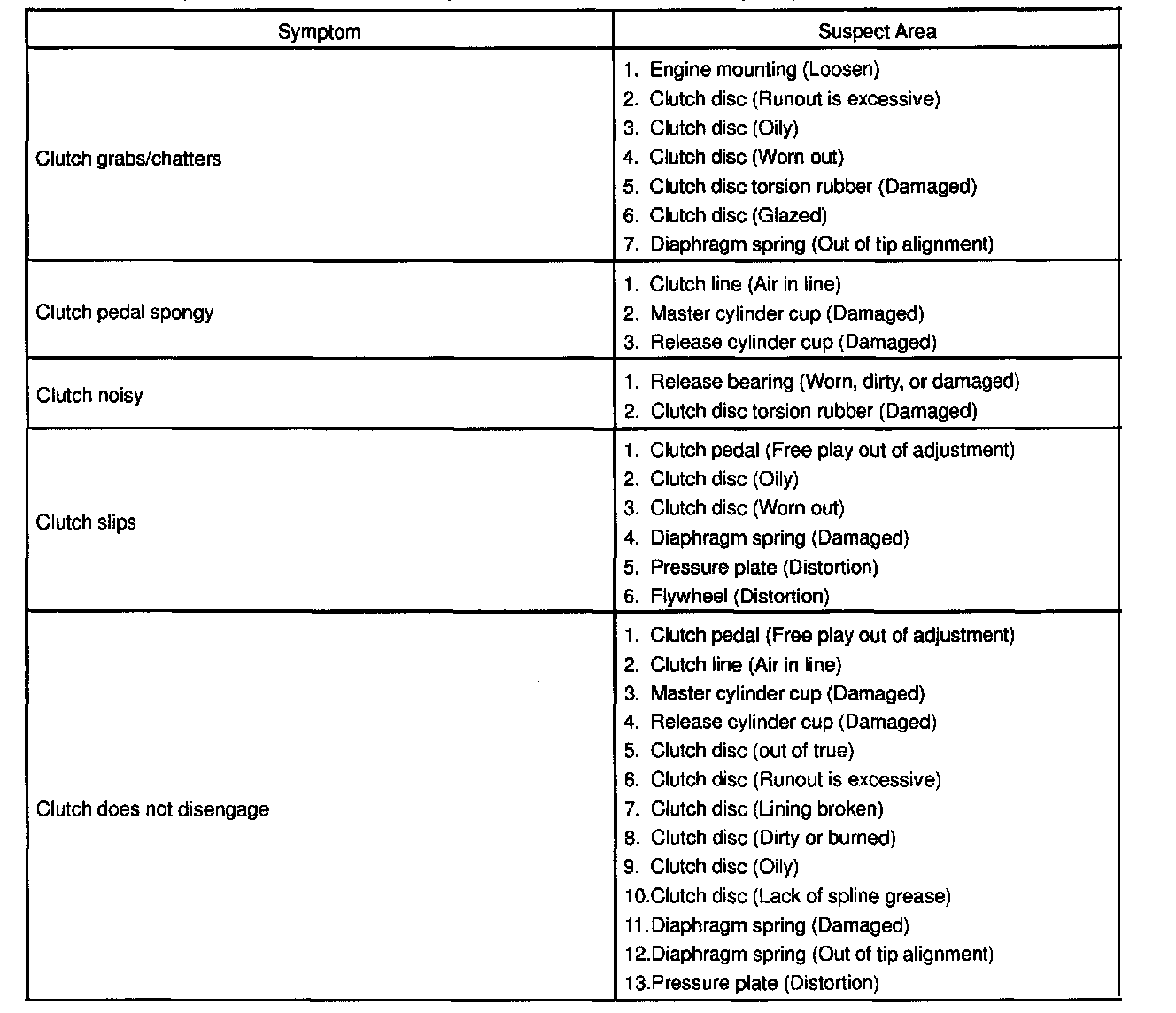 Clutch: Testing and Inspection