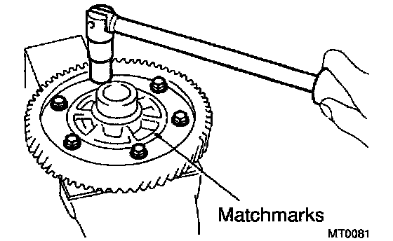 a. Place matchmarks on the ring gear and differential case.