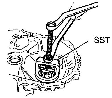 If the preload is not within the specification, remove the transmission case side outer race of the side bearing with SST.