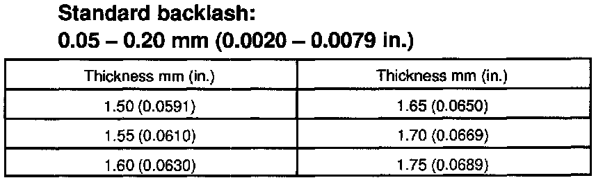 If the backlash is not within the specification, install a thrust washer of different thickness.