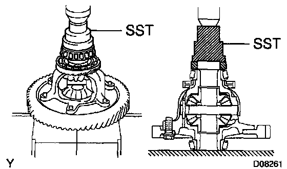 a. Using SST, remove the bearings from both sides of the differential case.