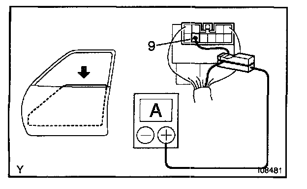 b. Attach a current - measuring probe to terminal 9 of the wire harness.