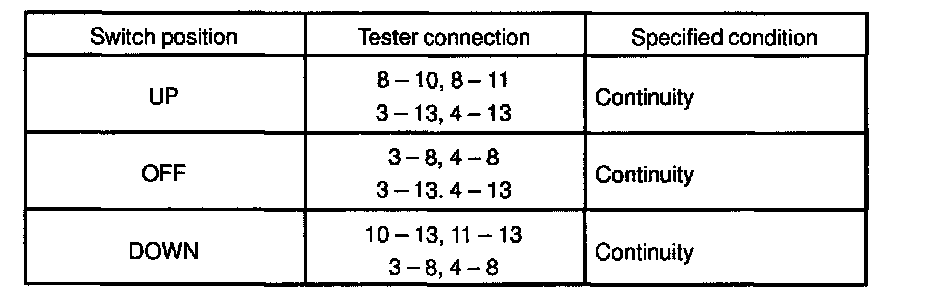 INSPECT POWER WINDOW MASTER SWITCH CONTINUITY
