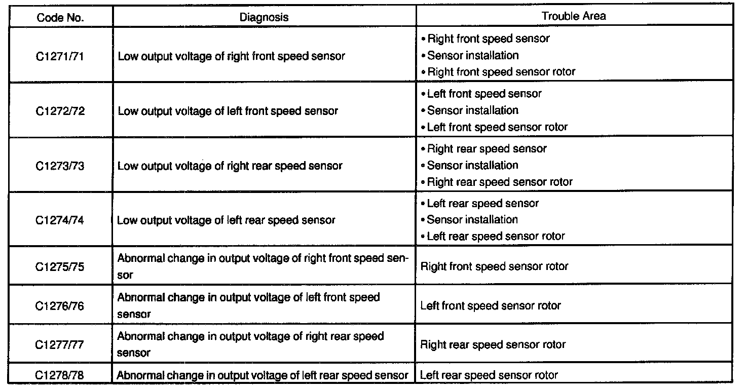 * Note Toyota doesn't offer diagnostic charts for these codes and only refers to trouble area.