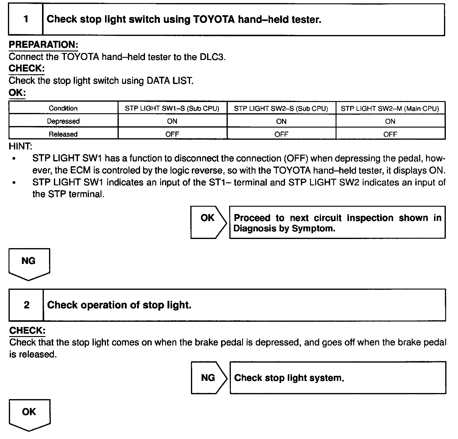 HINT: In case of using the TOYOTA hand-held tester, start the inspection from step 1 and in case of not using the TOYOTA hand-held tester, start it from step 2.
