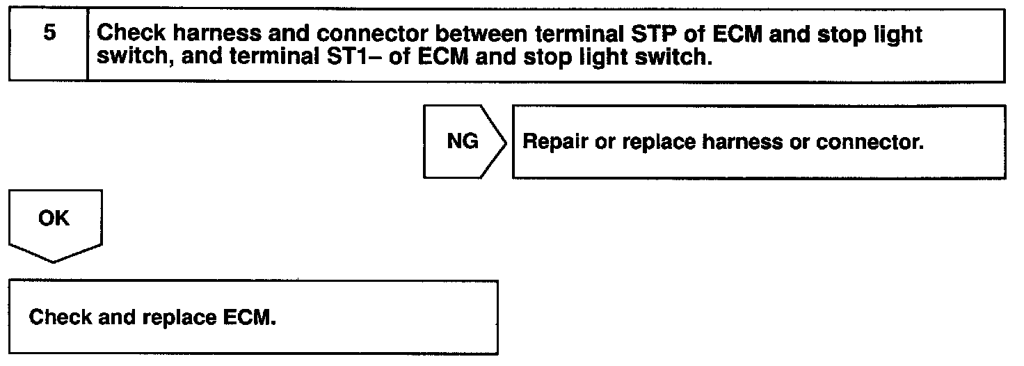 If the harness connected to terminal STP has an open circuit, terminal STP will have battery positive voltage and the cruise control will be turned off.