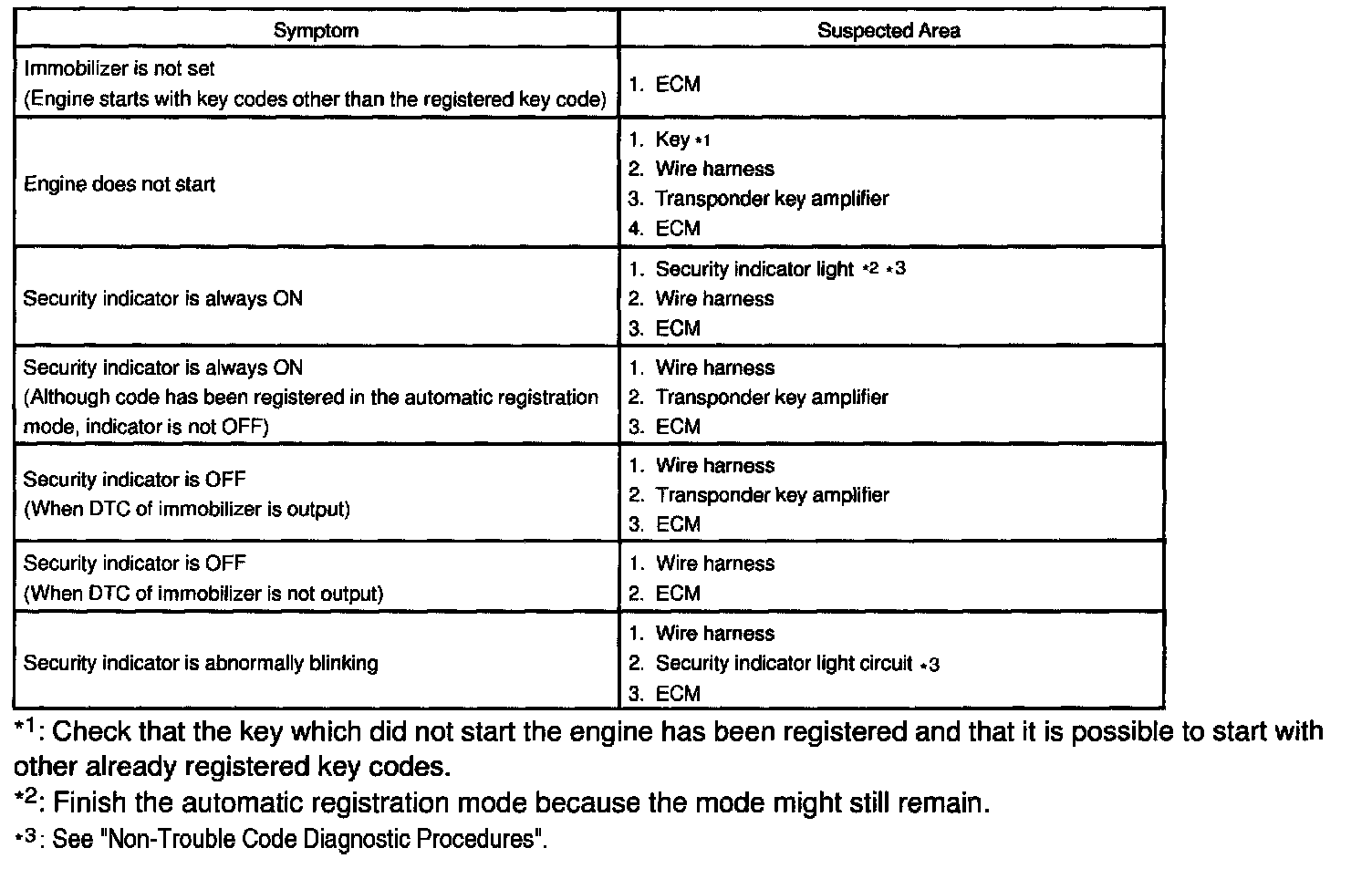 Problem Symptoms Table: