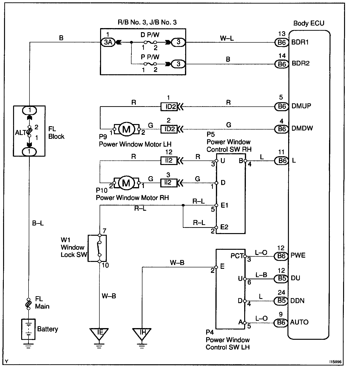 This circuit detects the state of the power window control switch.