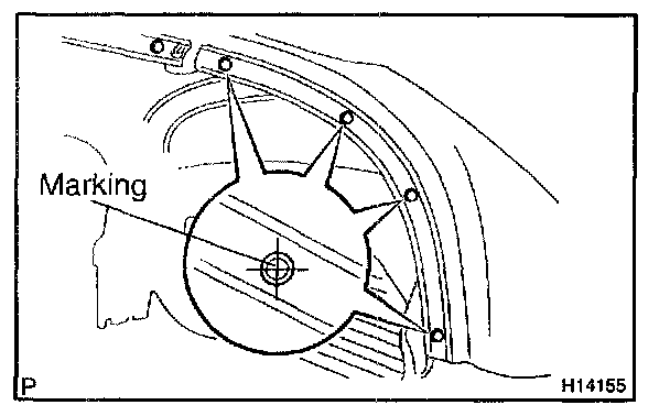4. Install the roof side rail finish moulding with the screws by matching them with marking.