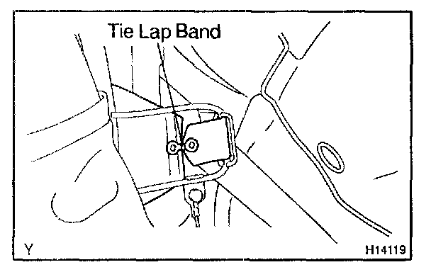 a. Close the tarpaulin lightly and cut out the tie lap band.