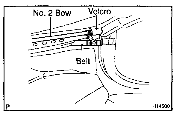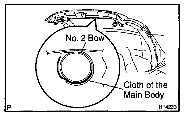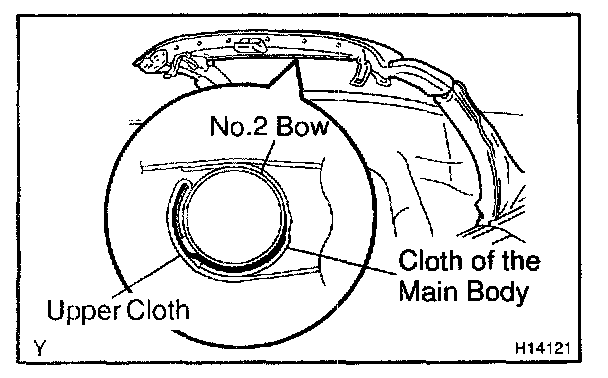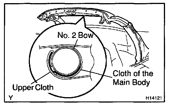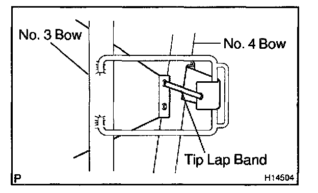 d. By marking the tarpaulin assembly in a half-open condition remove the upper cloth from the No.2 bow.