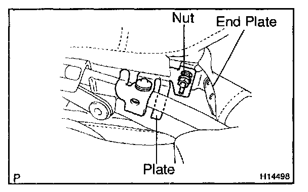 NOTE: Do not let the head of the bolt sticking up over the nut upper surface. Pinch the plate, while taking care of the plate facing direction.