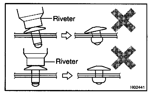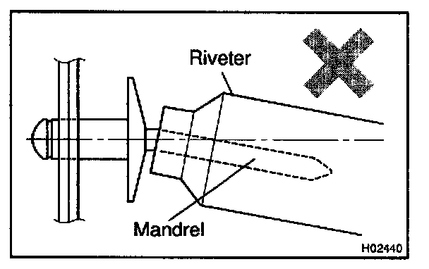 - Do not prize a riveter, as riveter is damaged, it is not tightened and the mandrel is bent.