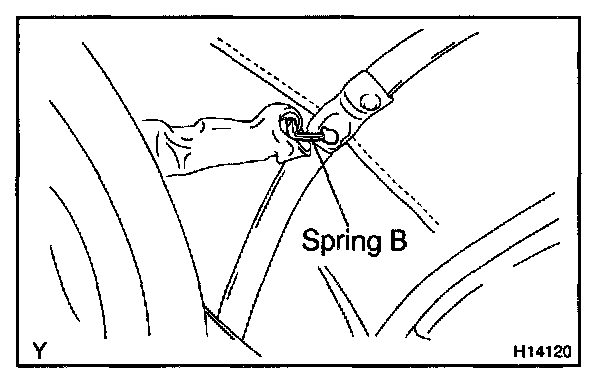 c. Pull up the spring cover and remove the spring B.