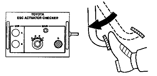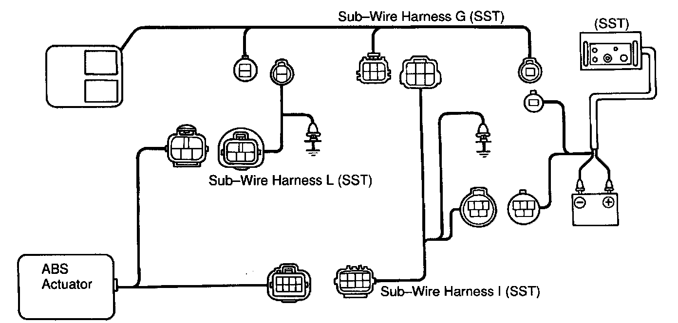 HINT: Using the ABS actuator checker (SST), check the operation of the actuator. If the actuator does not operate, check the operation of sub-wire harness G. If the solenoid and/or pump motor relay are abnormal, replace the relay and inspect the actuator operation again.