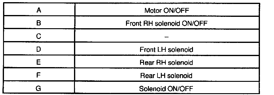 HINT: The functions of the ABS actuator checker switches are shown in the table.