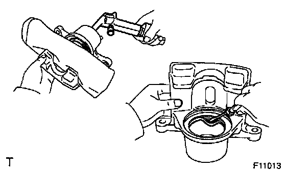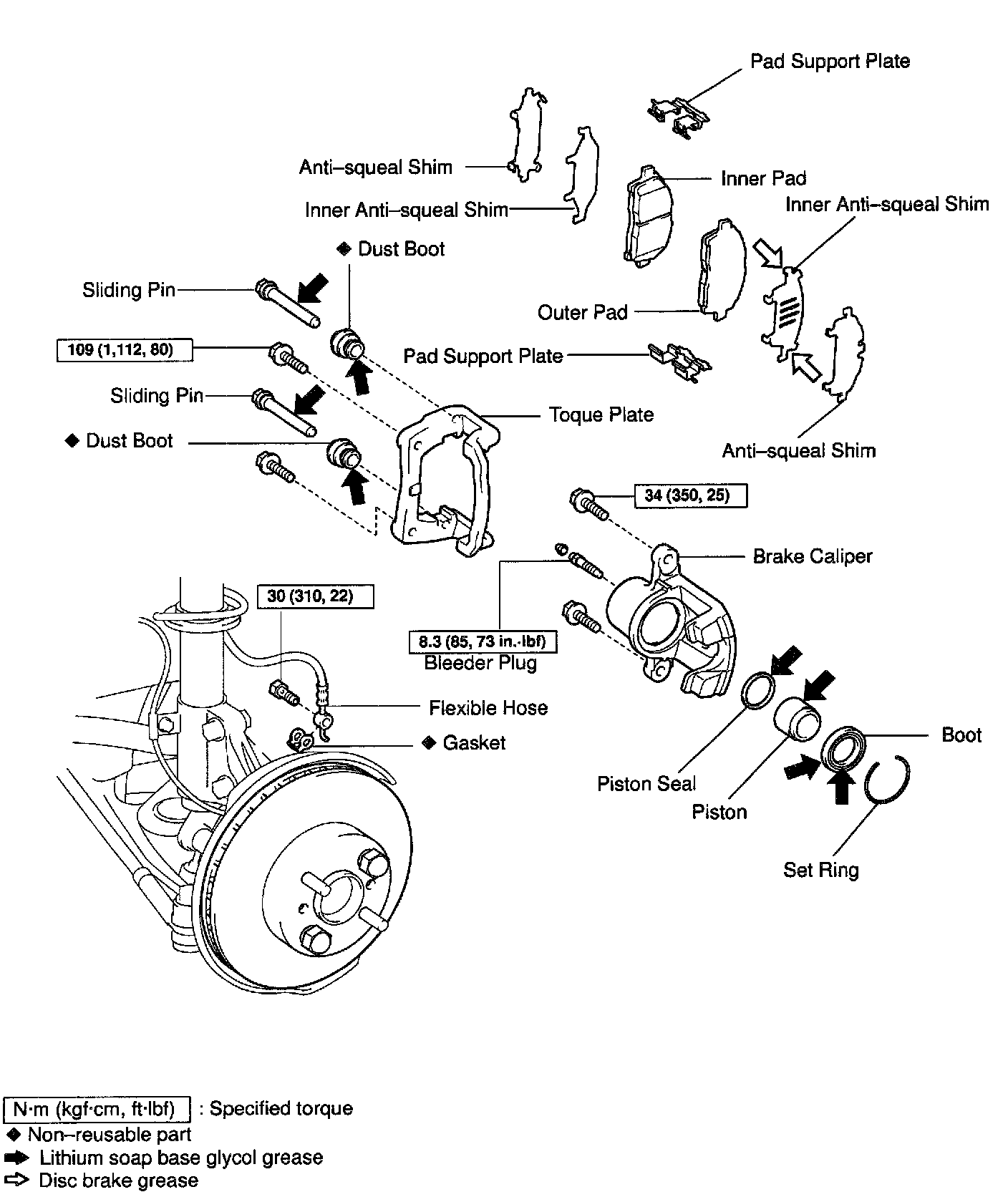 NOTICE: At the time of reassembly, check that the metal plate portion of the dust boot fits snugly in the torque plate.