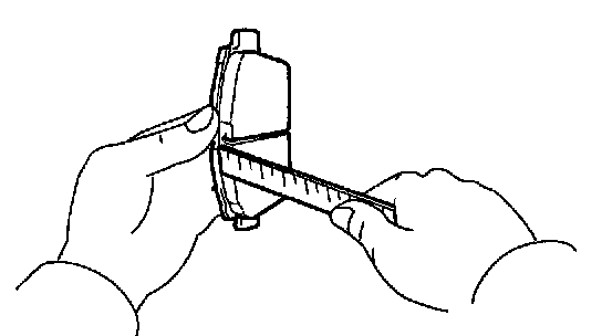 Using a ruler, measure the pad lining thickness.